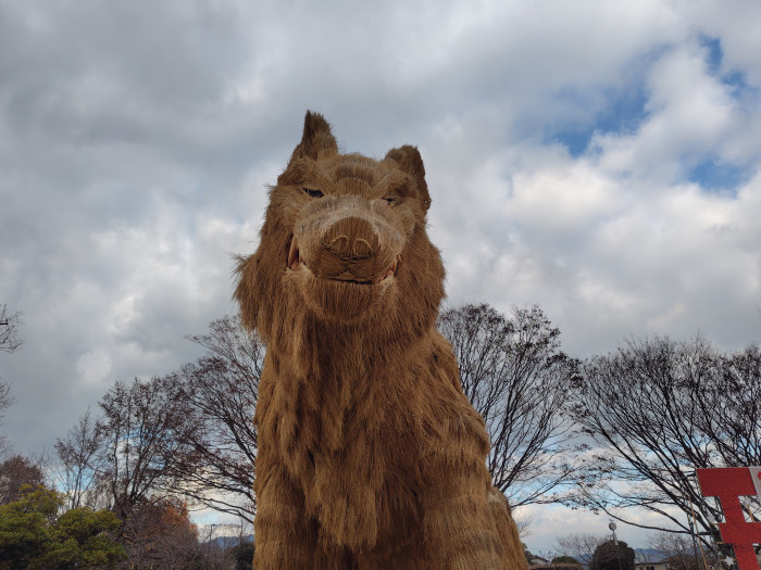 2025年の冬に公演に出現したのは巨大な山犬のかがしでした。