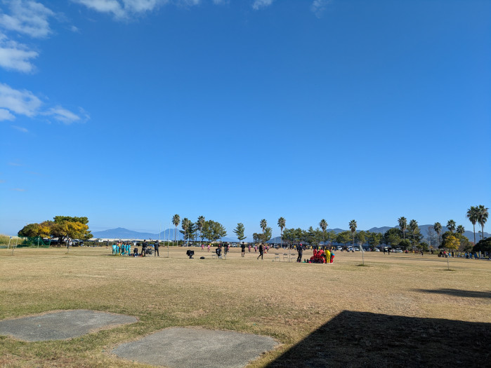 おこしき館の横の芝生では、小学生くらいの子どもたちがサッカーの大会をしていました。