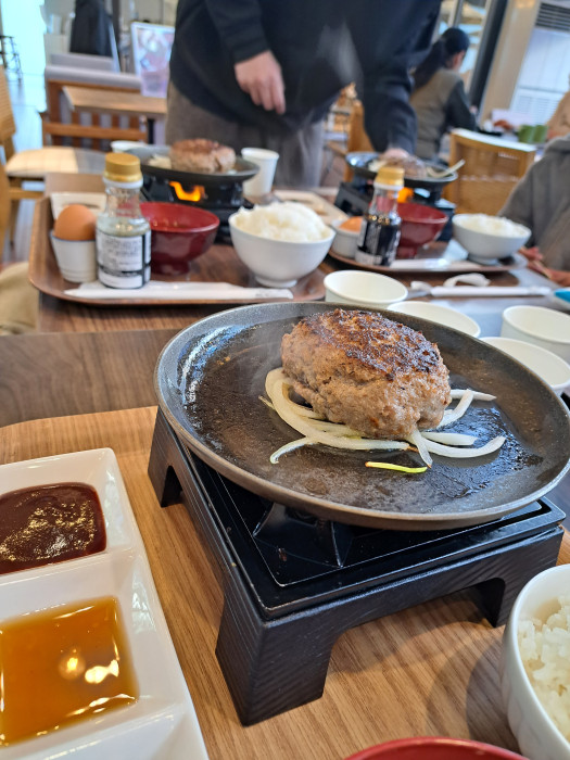 悩んだ末、家族みんなで名物と書かれていた「炭火焼ハンバーグ」を注文しました。