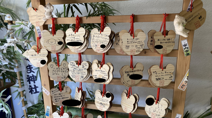 上部にいる両サイドのくまちゃん(左・くま太、右:ちびぐま)も、それぞれの願いを掲げています。