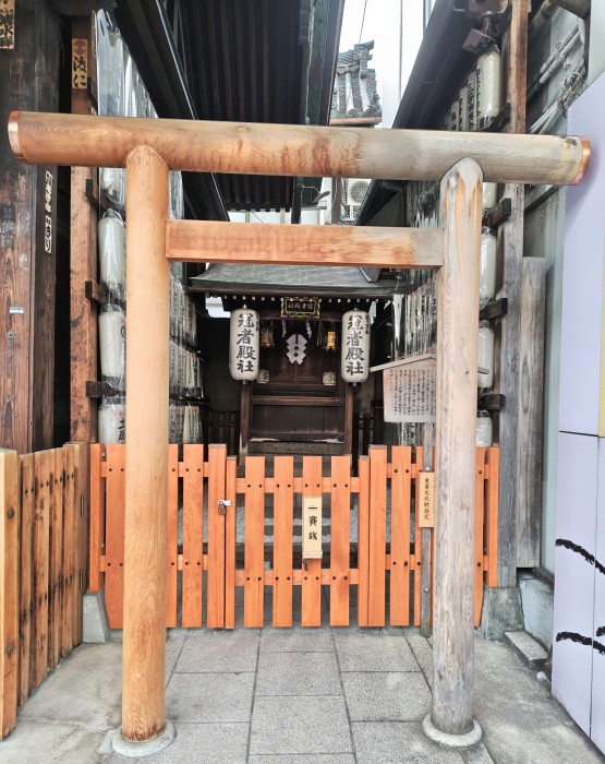 四条河原町を西へ数分歩くと四条通の南側に2つのお社が見えてきます。