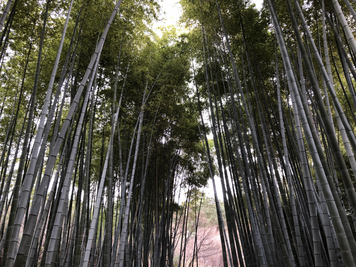 茶室の建築を堪能したあとは、竹林の中を歩いて山を下ります。