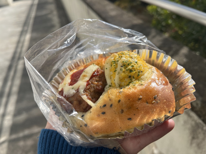 一つのパンでハンバーグとたまご両方楽しめるお得なパンです!