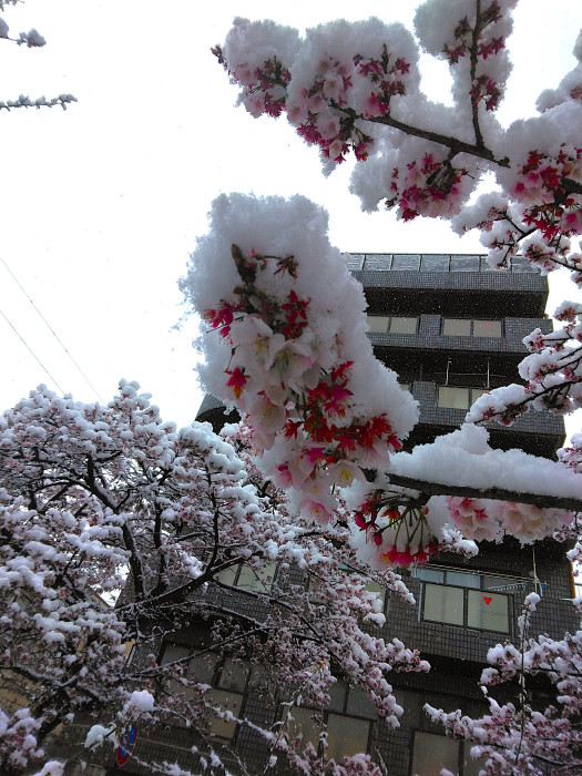 The cherry blossoms were already buried in the snow in mid-air.