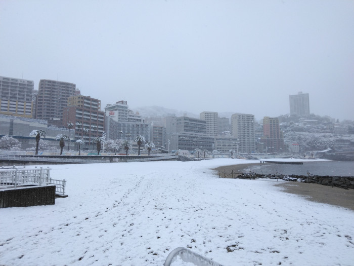 今回は、熱海である。地中に温泉が流れているため、地面が温かく、基本的に海沿いの市街地に雪が積もることはない。だが、起床して窓の外を眺めてみると、まるで雪国のような情景が広がっていた。熱海に住んで、初めて見た景色である。