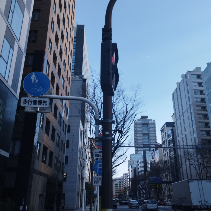 下町感もある通りを抜けたと思うと、大通りは高いビル。