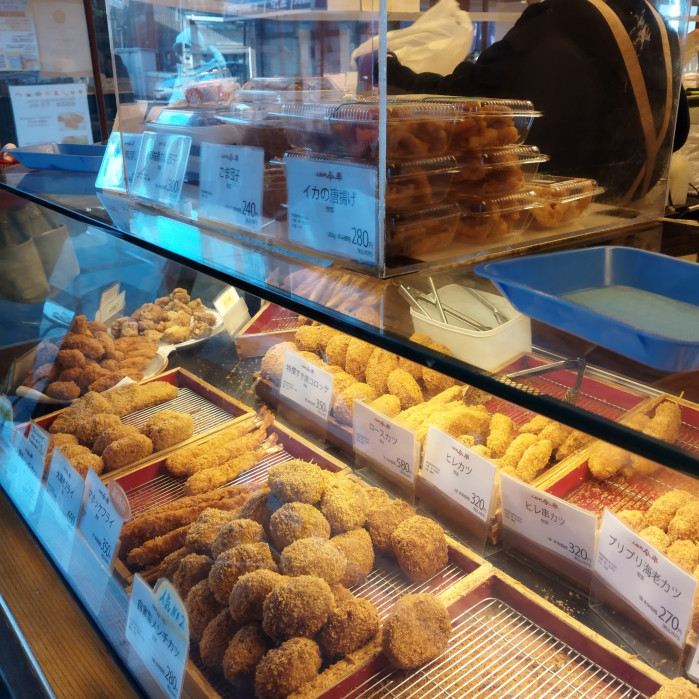 カウンターにびっしりと並べられた総菜の数々・・・どれも手作り揚げたてで目移りしてしまう量!!手軽に買えるリーズナブルな値段に!思わず飛びついてしまいました(笑)