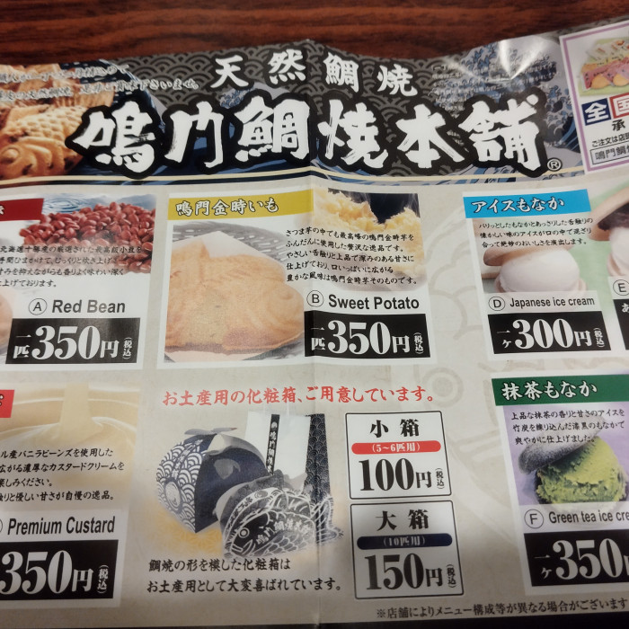 「鳴門鯛焼本舗」は、徳島県の鳴門が由来。