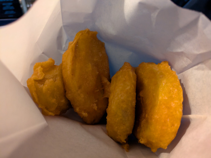 今回は芋天を選びましたが、次は夕食用にからあげも頼んでみたいところ。