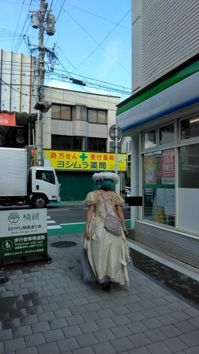 別府商店街の、田中薬品跡に展示されています。
