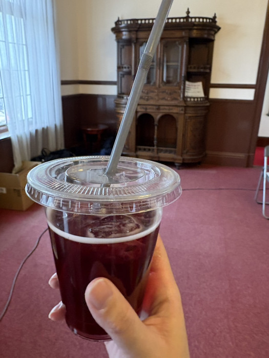 普段は入ることのできない本館にて牛久オリジナルワインカクテルが提供されていました。
