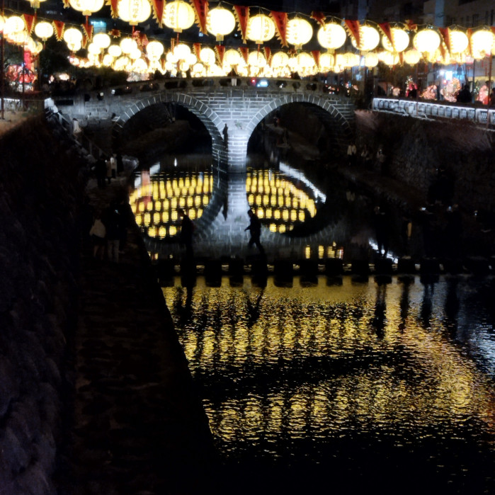 今夜は華やかに彩られ、眼鏡橋も旧正月を祝っているような気がしました。