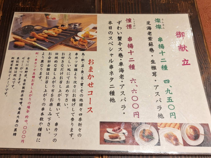 串カツをメインに提供し、バリエーションが多く充分に味わえます。