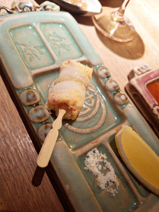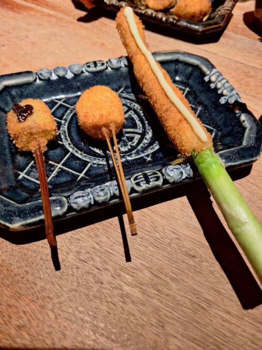 串カツはどれもサクサクで旨みが最高ですが、特にアスパラガスは見た目もユニークで味も他にはないようなくらい絶品でした。