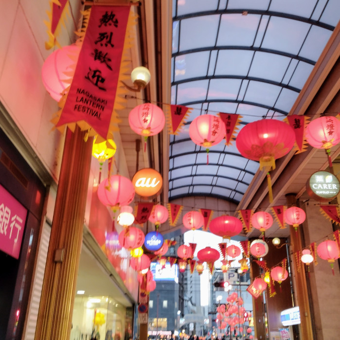 ランタンフェスティバル期間中は、アーケードの天上にぎっしりとランタンが飾られ、とても綺麗です。