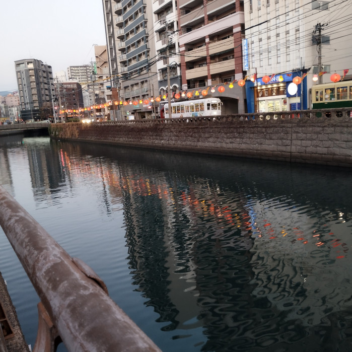 ここは長崎市内の中心部、中央橋です。