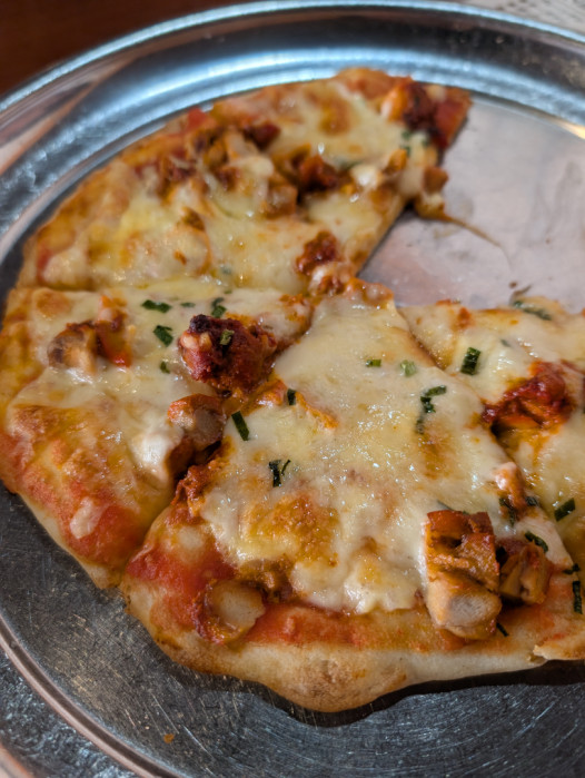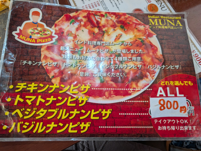 他の店舗ではナンピザを見かけたことがなかったので、今回、わたしはチキンナンピザを頼んでみました。