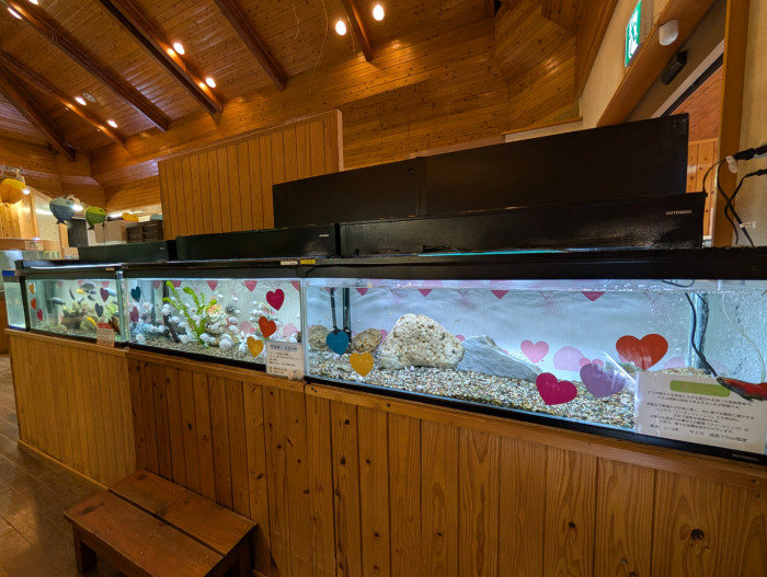 写真には映っていませんが、オオサンショウウオの「しょうこちゃん」もいます。