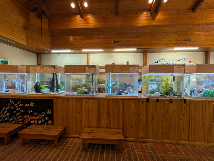 たくさんの水槽が置いてあり、色々な種類の魚が見れます。