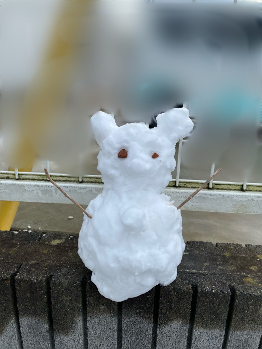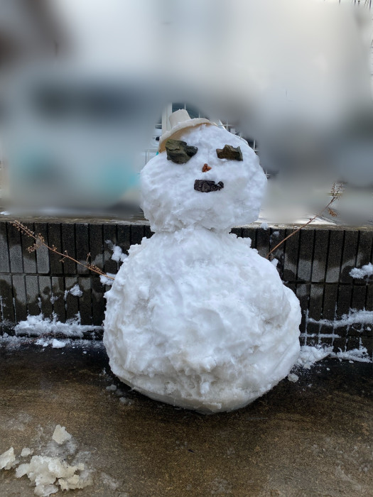 私は家の中で手洗いとうがいをして、下だけパジャマに着替えている間に、小さな雪だるまが完成していた。
