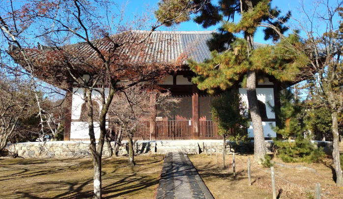 境内で最初に目に入るのが「講堂(赤堂)」。1165年に再建され、現在は重要文化財に指定されています。