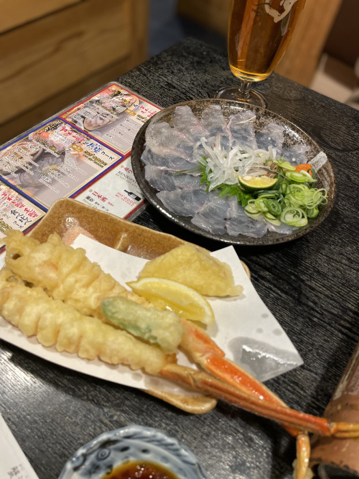 てっさ、カニのてんぷらも美味しかった!