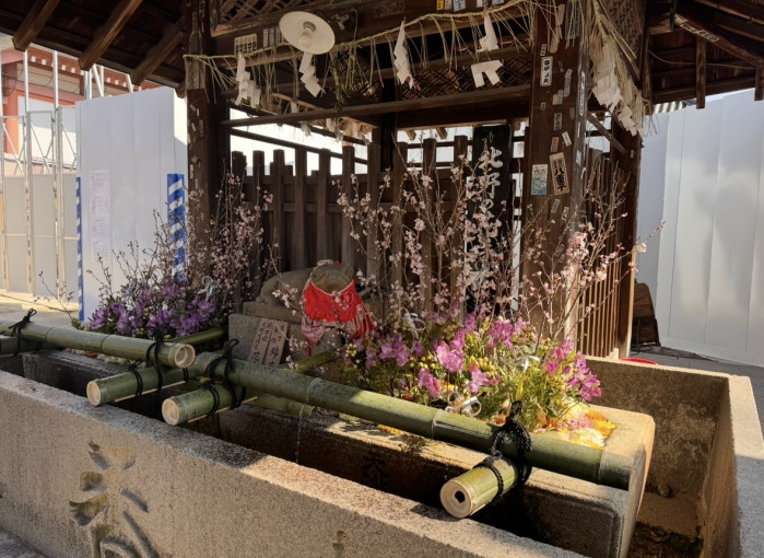 水手水のお牛様の場所も華やいでいました。