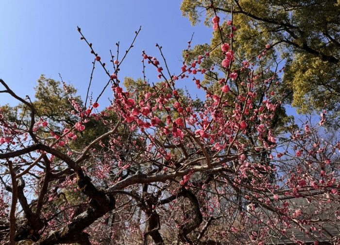 もちろん、普通に参拝するだけでも境内の中でたくさんの梅を愛でることができます。白梅・紅梅・枝垂れ梅・八重・一重など約50種の様々な梅の花に出会えますよ。