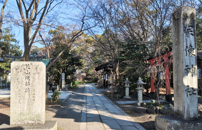 神社のある地は、清和天皇降誕の地と伝わるほか、花山天皇の御代には内裏を一時的に移し、花山院殿と称されたこともある場所です。