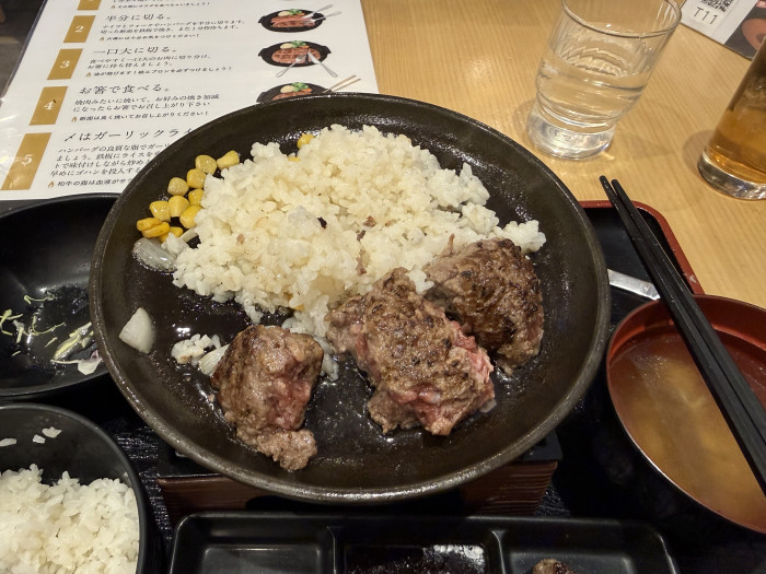 ハンバーグを食べたあとは、肉汁を使ってガーリックライスを食べることもできるのもまた貴重な経験でした😊
