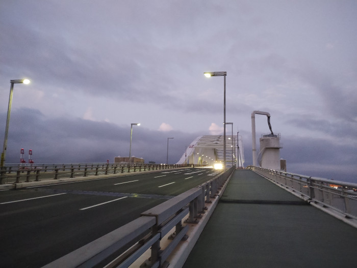 前方にいる人は夢舞大橋の手前まで車で行って、そこから歩いてきたのでしょうか?