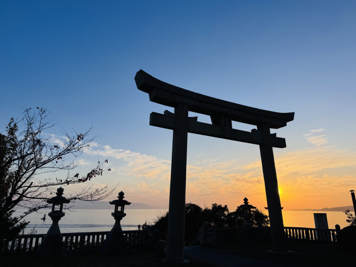 神社の縁結びのご利益と海の開放感が重なり、カップルだけではなく人気のフォトスポットとして雰囲気も抜群。