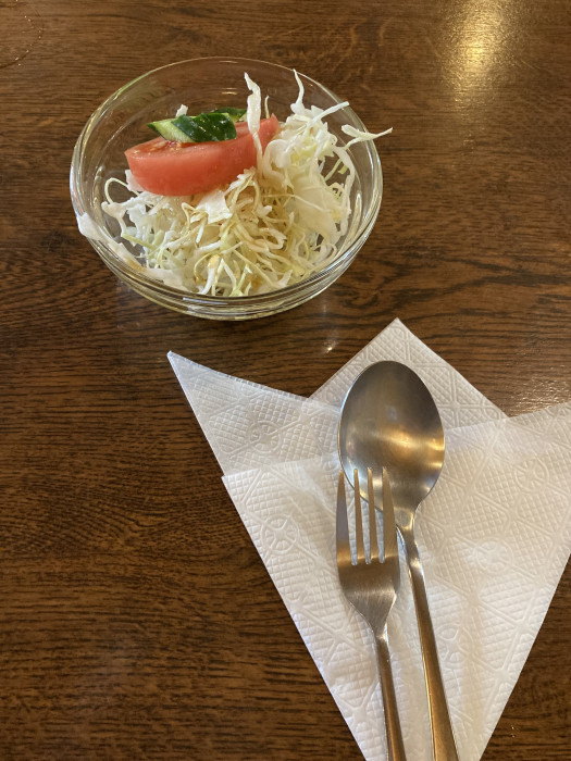 あっさりしたドレッシングのサラダは、ボリューミーなオムライスの付け合わせにぴったりでした。