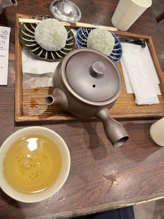 爽やかな苦みが香り高く広がり、サービスで付く甘味(このときは草餅)との相性も抜群でした。