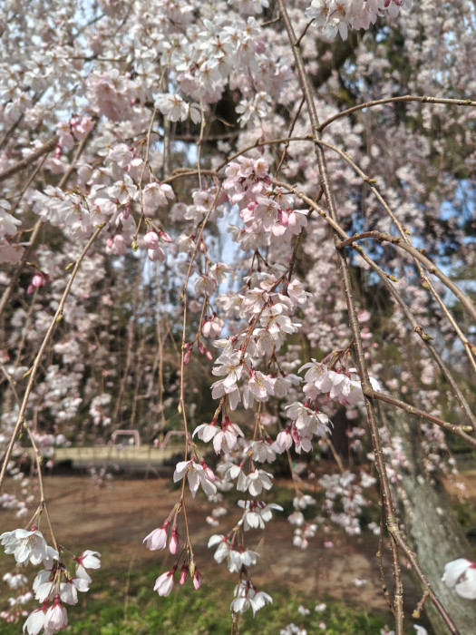 このエリアの中心にあるしだれ桜は、7分咲きくらいでした。