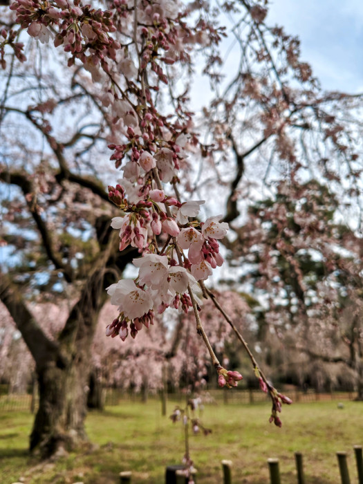 京都御苑にはほぼ毎年桜を見に行っているのですが、今年は少し早めのお花見となり、まだ開花前の桜もありました。