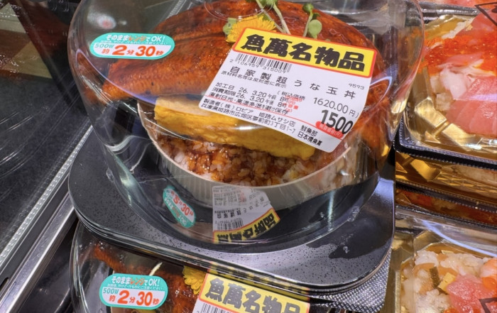 うなぎも容器に入りきらないインパクトあるビジュアルにもう笑うしかない・・・。