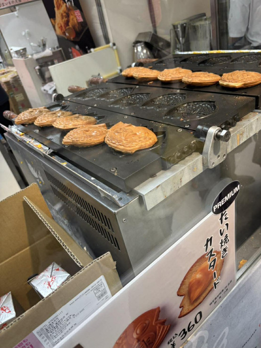 その場で焼いていてたい焼きに惹かれて購入したのは、まめものとたいやき。いつもの細長いたい焼きではなく丸いたい焼き。焼き立ては皮がパリッと香ばしく、あんこもぎっしりボリューミー。その場で味わうのはもちろん、お土産として持ち帰れる商品も多く、自宅で“全国の味めぐり”ができるのも嬉しいポイントでした。