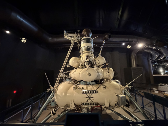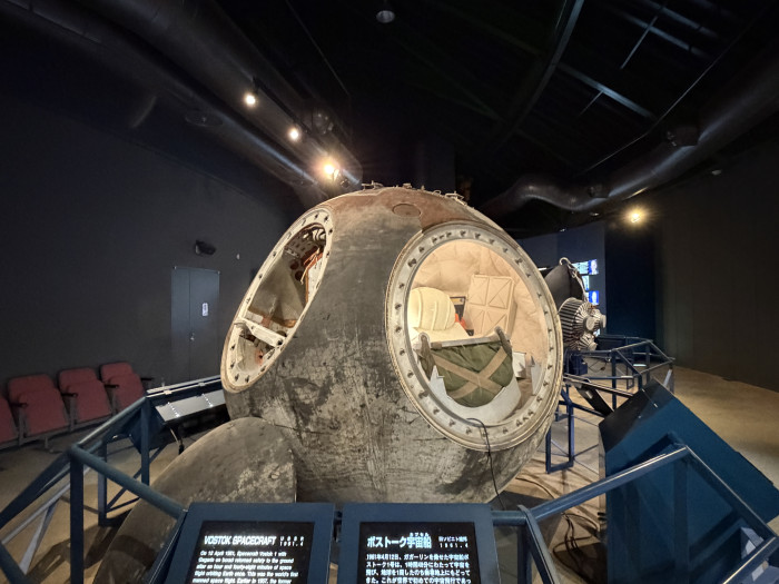 館内に入るとまず目を引くのが、実際に旧ソ連やアメリカで使用されていた宇宙船の実物展示。レプリカではなく本物が並んでいるため、その迫力やスケール感に圧倒されます。宇宙服やロケットのパーツなども展示されており、宇宙開発の歴史を間近に感じることができます。