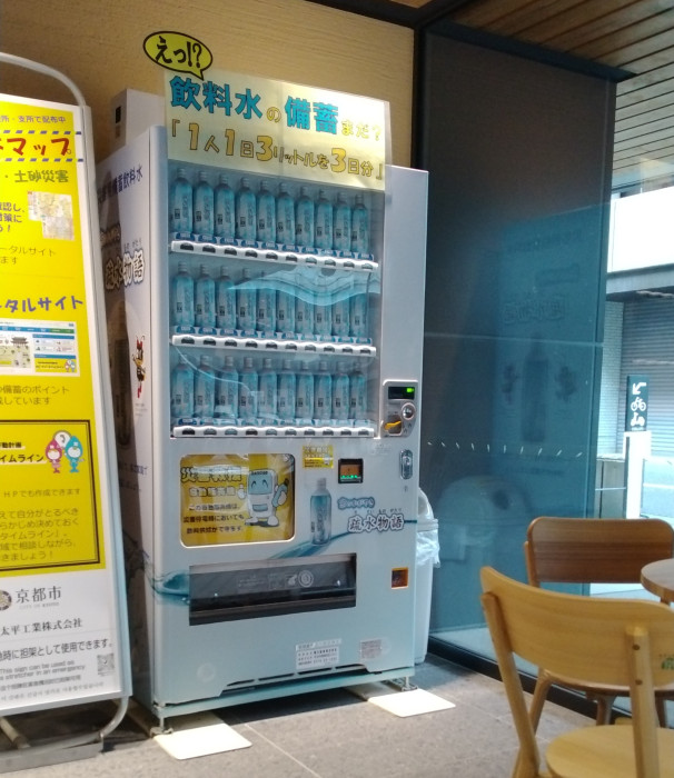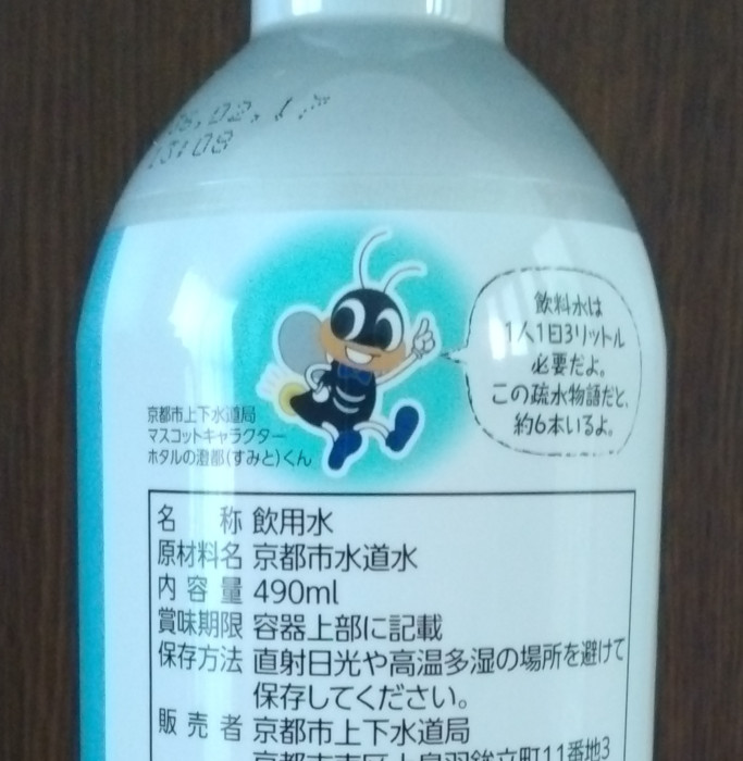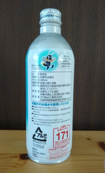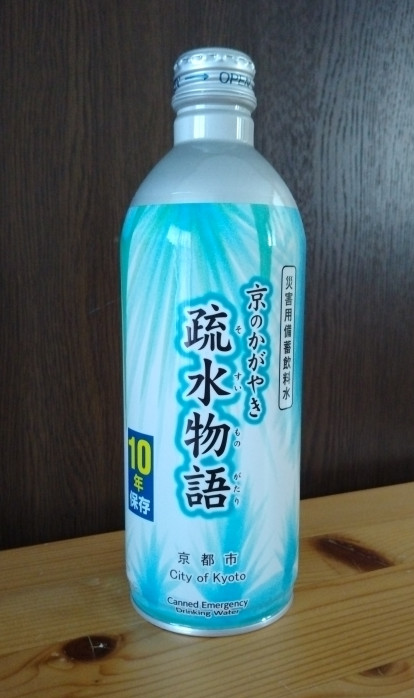備蓄推奨として京都市上下水道局が販売している災害用備蓄飲料水「京のかがやき 疏水物語」というものがあります。