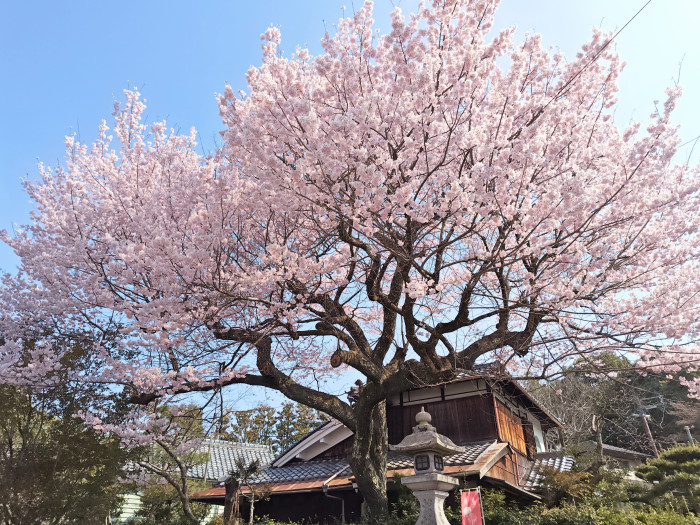 境内のどこにいても見ることができる大きな桜。