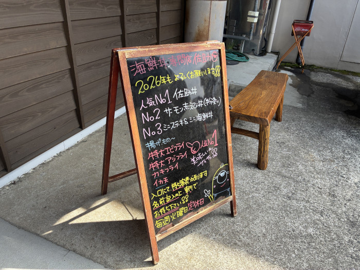 こちらはうどんメインで佐助丼を小盛りで。これでも十分な満足感でした。人気店のため、オープン時間からずらして尋ねたところ、少しの待ち時間でいただくことができました。夜営業もされているようで、海鮮尽くしの夜呑みも美味しそう…!4月から定休日が毎週木曜日から火曜日に変更しているので、ご注意ください。