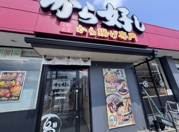 福岡県福岡市西区横浜、九大学研都市駅から徒歩約7分のところにある、から揚げ専門店「から好し 福岡伊都店」。