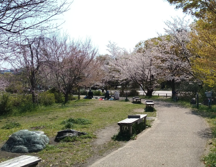 私はこのまま京都駅まで歩いたのですが、その際に出た大宮南口付近のちびっこ広場の桜。
