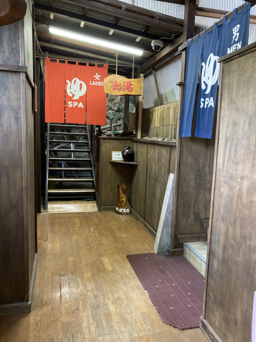 そのまま階段をまっすぐ登っていくとフロント・露天風呂へと続きます。