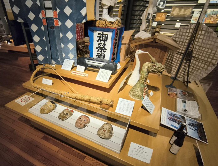 館内では「湘南の丘陵と海」をテーマに展示が行われています。常設展示では、考古・歴史・民俗・自然の4分野が紹介されており、地域に残された資料や模型、解説を通して、大磯という土地がどのように成り立ち、現在へつながってきたのかを知ることができます。館内には、祭礼で使われた道具や面なども展示されています。文字だけでは分かりにくい地域の信仰や民俗文化も、実物を見ることで具体的に理解しやすくなります。