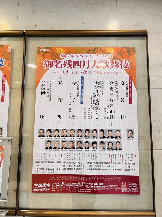 四月、五月は「大阪松竹座さよなら公演」と題して、歌舞伎の上演が行われています。