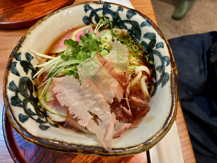 しっかりとしたコシを持つ自家製麺と、やさしい味わいの出汁の組み合わせが特徴で、「京都らしい空間×上品な出汁×自家製麺」という魅力が見事に調和しています。