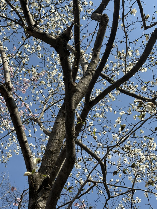ちょっと早起きして職場へ向かう途中、大通公園に寄り道すると、もうキタコブシやエゾヤマザクラが花を咲かせてました。