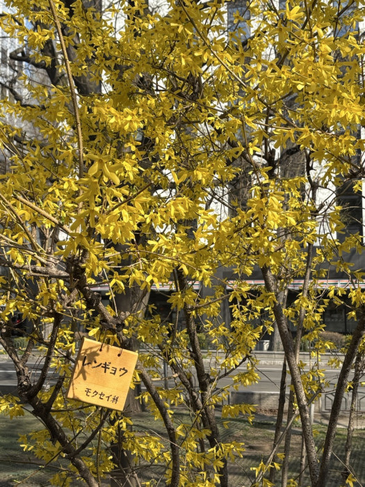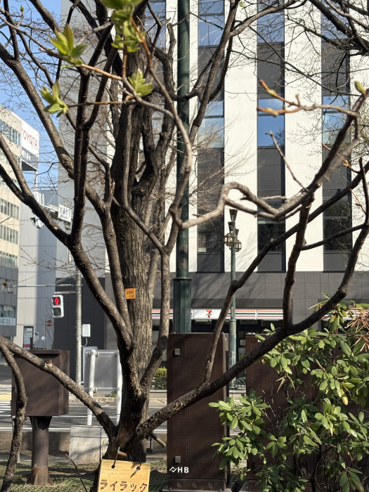 若葉が生えてきたライラック、鮮やかな黄色のレンギョウや、花壇にも小さな花が咲きはじめて、大通公園に春が散りばめられています。